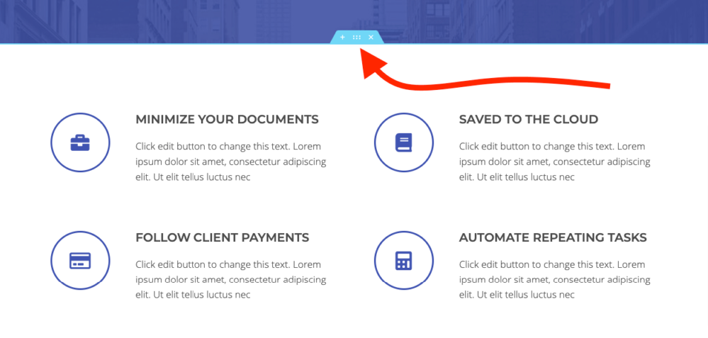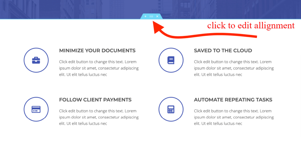 Click on any of the page’s sections to edit it. For instance, if you are not satisfied with the pre-built section’s alignment, you can click on the six-dot icon and drag and drop the section in your preferred way.