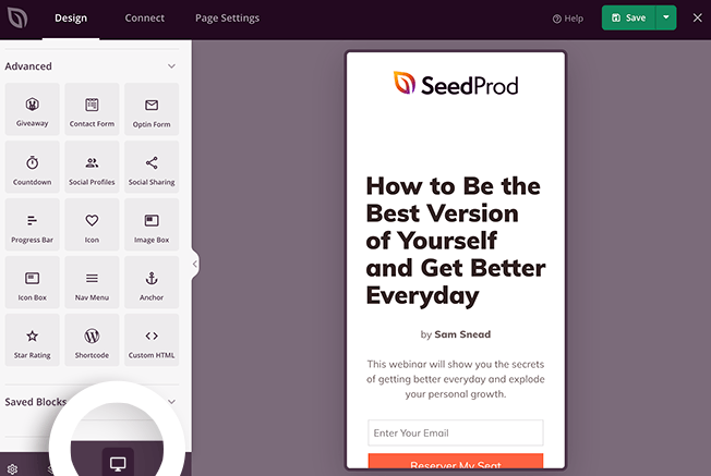 Using the advanced editing options, edit any corner of your landing page and once you are done with the editing, hit the save and then publish button to go live.